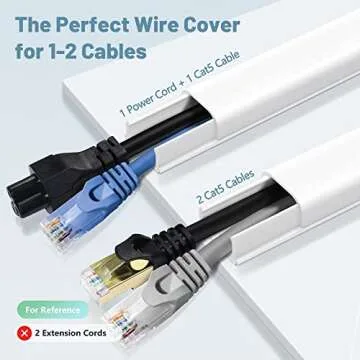 This pack includes 4 sections (each measuring W0.7” × H0.4” and 17 inches long) totaling 68 inches of cable covering power. It comfortably fits a mix of power cables and Ethernet lines, but always ensure your cables have a diameter of under 0.3 inches for the best fit. Say goodbye to the hassle of thick cords and enjoy a neatly organized living space!