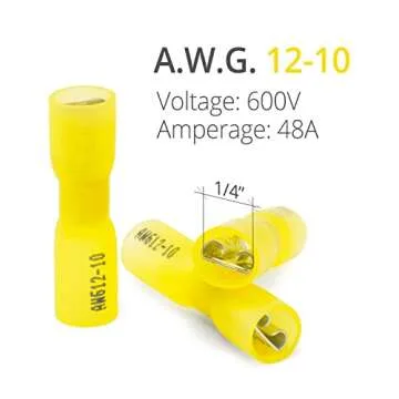 Show more Introducing the Wirefy Male Female Spade Connectors - a premium heat shrink spade connector kit designed for ultimate durability and reliability in electrical connections. This comprehensive set includes top-quality spade terminals engineered for quick disconnect and efficient wiring solutions. With an array of connectors designed for both male and female ends, this kit is perfect for various applications, including automotive, marine, or home wiring projects. Its heat-shrink feature ensures a watertight seal, providing enhanced protection against moisture and environmental factors, making your electrical connections last longer and perform better.