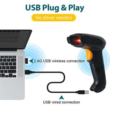 Wireless Barcode Scanner 2-in-1 (2.4Ghz Wireless+USB 2.0 Wired) Rechargeable 1D Barcode Reader USB Handheld Bar Code Scanner with USB Receiver (1D Wireless)