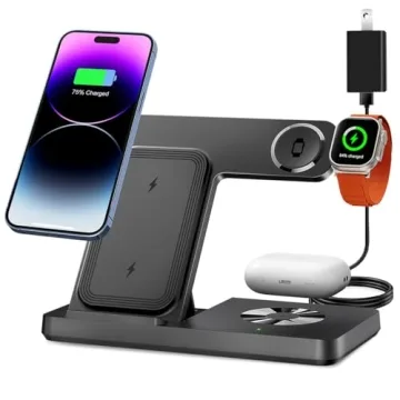 Show moreIntroducing the ultimate solution for all your charging needs: the 3 in 1 wireless charger station designed specifically for Apple products. This innovative brand offering showcases a compact, foldable design that seamlessly fits into any setting, from your nightstand to your office desk. The versatility of this charger enables you to power up your phone, Apple Watch, and AirPods simultaneously, making it an indispensable accessory for Apple enthusiasts. Compatible with a variety of Apple devices, including iPhone 15/14/13/12/11 series, Apple Watch Series 9/Ultra 2/Ultra/8/7/SE/6/5/4/3/2, and AirPods 2/3/Pro/Pro2, it embraces simplicity while ensuring efficient energy use.