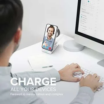 Show moreThe Aukuse 3in1 Wireless Charging Station is the ultimate solution for tech enthusiasts who value efficiency and convenience in their daily lives. This innovative charging stand blends cutting-edge technology with a modern, sleek design, making it the perfect addition to your home or office. With the capability to charge your smartphone, earbuds, and Apple Watch all at once, you'll never have to deal with tangled cords or multiple charging cables again. Thanks to its advanced Qi technology, say goodbye to slow charging and hello to an optimized charging experience that highly exceeds the output of traditional wall chargers.