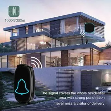 Wireless Doorbell, BO YING Waterproof Door Bell, Easy Install, Operating at 1000ft Range with 38 Melodies to Choose, Adjustable Volume and LED Flash,1 Push Button(Battery included)&1 Receiver (Black)