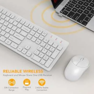 Wireless Keyboard and Mouse, WisFox Full-Size Wireless Mouse and Keyboard Combo, 2.4GHz Silent USB Wireless Keyboard Mouse Combo for PC Desktops Computer (Ivory White)