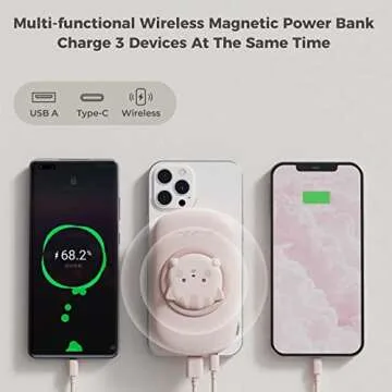 Wireless Magnetic Portable Charger Power Bank Fast Charging 10000mAh USB C Power Bank, Cute Portable Battery Pack for iPhone 14/13/12 Series, iPad, AirPods-Pink