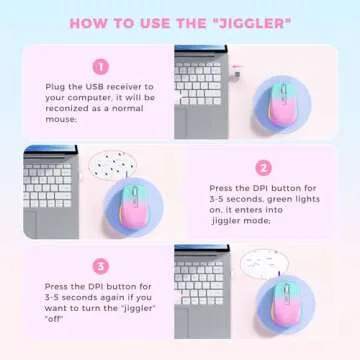 Wireless Mouse Jiggler - LED Wireless Mice with Build-in Mouse Jiggler Mover, Rechargeable Moving Mouse for Computer with Undetectable Random Movement Keeps Computer Awake - Gradient Pink