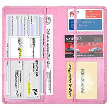 Show moreIntroducing the Wisdompro Car Registration and Insurance Holder—your ultimate solution for a clutter-free and stylish glove box! This premium wallet is crafted from high-quality PU leather and features a heavy-duty vinyl PVC construction, ensuring durability and protection for your essential documents. Measuring 9.5" x 5.1" (24cm x 13cm), it's designed to fit snugly in your car's glove compartment, keeping everything organized without taking up too much space. With stunning 3D embossing and a chic pink finish, this holder combines functionality with flair, allowing you to showcase your style while keeping important paperwork at your fingertips.