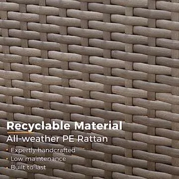The furniture set features a strong galvanized steel frame with hand-woven PE rattan, and the cushions are made from Olefin fabric.