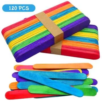 ... Show moreUnleash your creativity with the WISYOK 120 Pcs 6” Colored Jumbo Wooden Craft Sticks! This value package features an impressive collection of 120 bulk craft sticks, perfect for educational activities, DIY projects, and arts and crafts. Each stick measures 5.9” x 0.66”, offering ample space for crafting. Available in six vibrant colors—red, orange, yellow, green, blue, and purple—these sticks encourage imaginative play and allow you to mix and match for personalized designs that truly stand out.
