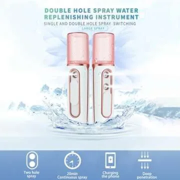 withthesun Nano Facial Mister, Cool Mist Face Steamer with 2 Spray Nozzle, USB Rechargeable, Visual Water Tank, Nano Mister for Eyelash Extensions, Skin Care, Daily Makeup, Deep Hydrating-Pink