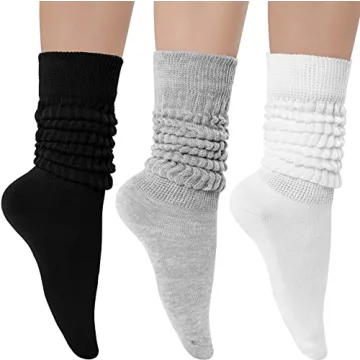 Show moreIntroducing the Witwot Women's Slouch Socks, a stylish and cozy addition to your wardrobe that beautifully fuses vintage design with contemporary comfort! Made with a breathable cotton blend, these trendy knee-high tube scrunch socks are perfect for women and girls alike, and come in a stunning package of three pairs featuring classic black, white, and grey hues. Measuring about 40cm (15.7 inches) from top to heel, you have the versatility to wear them slouched around the ankle for a relaxed look or stretched up for a chic knee-high style that complements any outfit effortlessly.