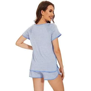 WiWi Pajamas Set for Women Soft Stripe Short Sleeve Top and Shorts Sets Ladies 2 Pieces Summer Sleepwear Pjs S-XXL, Blue Stripe, X-Large