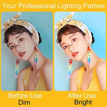 This innovative ring light is designed for everyone looking to elevate their online presence. Equipped with **3 color modes** and a staggering **10 brightness levels**, it caters to all your lighting needs, ensuring that you always look your best by eliminating unflattering shadows. This is the perfect dimmable lighting for makeup application, social media content creation, and product photography – a true game changer for anyone who regularly engages in videography.