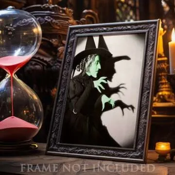 Show more Introducing the Wizard of Oz Decor - Wicked Witch of the West, a stunning 11x14 Unframed Poster Print that will captivate any fan of the classic film. This exquisite piece beautifully portrays the Wicked Witch of the West, exuding an eerie charm and timeless appeal. Handcrafted by a dedicated team in Tomball, TX, this poster is printed on high-quality photo paper to ensure that every detail radiates with clarity and sophistication. Elevate your space with this black and white vintage witch artwork that perfectly encapsulates the style of old Hollywood glamour and retro horror aesthetics.
