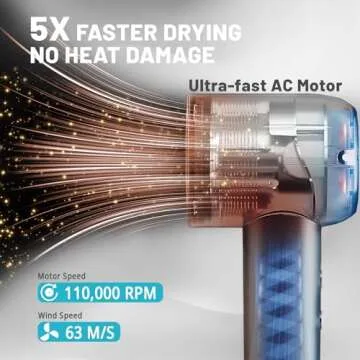 Wizwise Hair Dryer, Ionic Blow Dryer with Smoothing Nozzle, 1500W Hair Blow Dryer with 110,000RPM Fast Dry, 4 Temps&2 Speeds, 2 Accessories for Curls, Dark Gray
