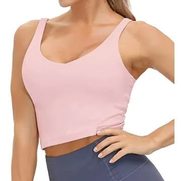 Wjustforu Women's Tank Top Padded Sports Bra Running Workout Yoga Crop Top (Small, Pink)