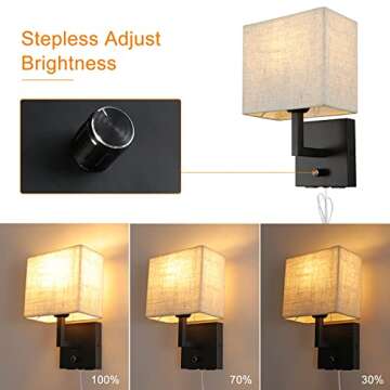 Show more Introducing the ultimate blend of style and functionality: our incredible fabric wall lamp with USB charging capabilities. This beautifully crafted lamp boasts two built-in 5V/2.1A USB ports located conveniently on the light base. Whether you're looking to charge your phone, tablet, or other electronic devices, you can do so with ease and efficiency, regardless of whether the lamp is on or off. It's the perfect companion for modern living, making your life simpler and more connected.