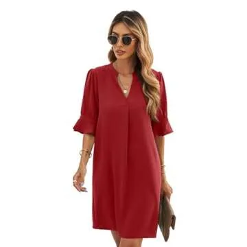 Wkior Women's Shift Dresses Elegant Summer V Neck Casual Flowy Swing Dress Red M
