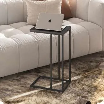 WLIVE Black Side Table, C Table End Table for Bedroom, Home Office, Dorm, Living Room Tables, Black Couch Table, 2-Tier Side Tables