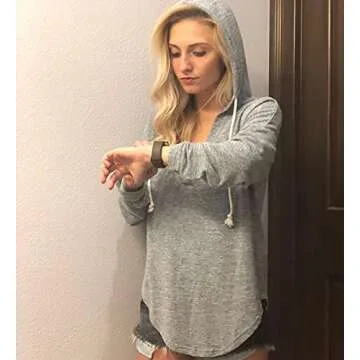 WLLW Womens Long Sleeve Deep V Neck Drawstring Sweatshirt Hoodies Tops Blouse Grey