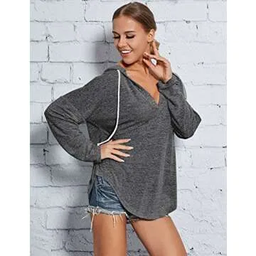 WLLW Womens Long Sleeve Deep V Neck Drawstring Sweatshirt Hoodies Tops Blouse (M, Dark Grey)