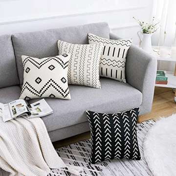 WLNUI Set of 4 Boho Pillow Covers,18x18 Pillow Covers Modern Throw Pillow Covers Black Geometric Mudcloth Linen Neutral Decorative Pillow Covers for Sofa Couch Chair
