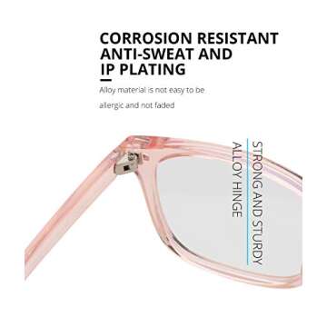 Show more Introducing the WMAO Blue Light Blocking Glasses, where style meets functionality in a chic pink square frame designed to cater to the needs of modern-day users. In a world dominated by screens, these glasses are not just a fashion accessory; they are a necessity for anyone who spends substantial time in front of computers, tablets, or smartphones. Crafted with high-quality materials, they feature non-prescription lenses, making them a perfect choice for anyone seeking an effective solution against harmful blue light exposure while maintaining a trendy look. Whether you’re a gamer, a professional, or a student, these glasses are designed to protect your eyes without compromising on style.
