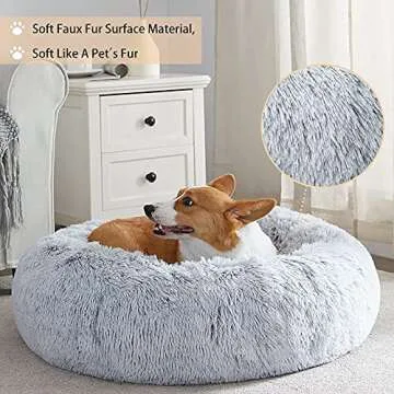 WNPETHOME Calming Dog & Cat Bed, Anti-Anxiety Donut Bed, Fluffy Faux Fur Cushion for Small Dogs and Cats (24 x 24 Inch, Light Grey)