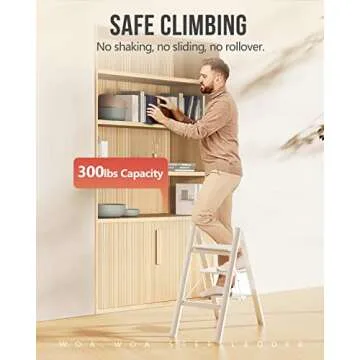 Lightweight at just 7.99 lbs, it’s incredibly easy to move between rooms and can be neatly stored away in small spaces, such as behind doors or in closets. The ladder's design is complemented by non-slip treads that ensure secure footing while you work at elevated heights. Each step measures 6.9 x 12.4 inches, providing ample space for your feet and a comfortable climb.