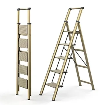 WOA WOA 5 Step Ladder - Lightweight, Anti-Slip, Portable Gold Ladder
