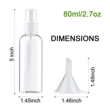 Show moreIntroducing the Woaiwo-q Fine Mist Mini Spray Bottles—your ultimate travel companion for a variety of liquids! Whether you’re looking to create homemade sanitizers, refreshing facial mists, or even oils for culinary endeavors, these 80ml (2.7oz) clear spray bottles deliver versatility and convenience. Made from high-quality, sturdy plastic, each bottle is designed to withstand everyday use, making them ideal for both personal and professional applications. With a sleek design that easily fits in your purse or car, you never have to worry about bulk again!
