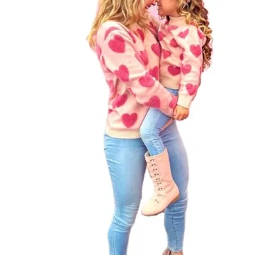 WOBONIU Mommy & Me Valentine's Day Sweatshirt - Cozy Love Heart Matching Outfits