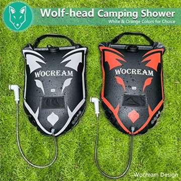 Wocream Wolf-Head Camping Shower Bag, 6.6 Gallons/25L Camp Shower Bag, Large Water Flow, Handheld Shower Head, Solar Heating PVC Shower Bag, Portable Shower for Camping(Orange Red)