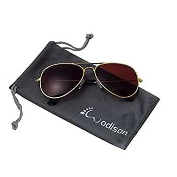 Wodison Classic Kids Sunglasses for Boys Girls Children sunglasses Reflective Metal Frame Gold Frame Brown Lens
