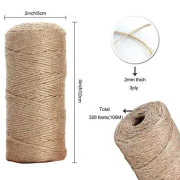 WODTRUE 3 Ply 2mm Thick 328 Feet Natural Jute Twine 2 Pack,Christmas Twine,Best Arts Crafts Gift Twine Durable Packing String for Weddings,Gift Wrapping, Gardening,DIY Crafts, Decoration.