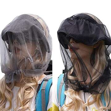 wohohoho Mosquito Head Net Mesh with Drawstring, Bug Face Netting for Hats, Mesh Face Shield for Men & Women Beekeeper Net Mask Protection for Midges, Bugs & Gnats (2 Packs, Mix Colors, Updated Size)