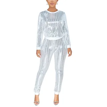 WOKANSE Women’s Sparkly Sequined Tracksuit Set for Ultimate Glam