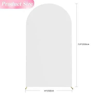 Show moreElevate your celebrations to new heights with the exquisite Wokceer 7.2FT Wedding Arch Cover, expertly crafted from premium spandex by Chiara. This stunning cover, designed to gracefully drape over your arch, measures an impressive 7.2x4ft (H x W) and is available in a pristine white color that effortlessly enhances any decor. What makes this arch cover truly special is its double-sided design, showcasing beautiful details from every angle, ideal for creating memorable backdrops at weddings, birthdays, and more. The high-quality spandex material ensures a snug fit, providing a smooth, wrinkle-free appearance that looks and feels luxuriously sophisticated.