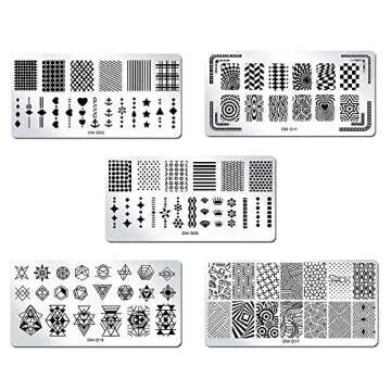 Show moreElevate your nail art game with the WOKOTO 5Pcs Nail Plates Stamping Set, a must-have nail art kit that combines ease of use with professional-quality results. Crafted from high-quality stainless steel, these plates boast a protective blue film to preserve their pristine condition. Each plate is thoughtfully designed with classic geometric shapes and playful star patterns, ensuring a versatile addition to your nail art collection. Perfectly sized for full nail designs, these stamping plates guarantee vivid and precise transfers every time, whether you're a novice or a seasoned pro.