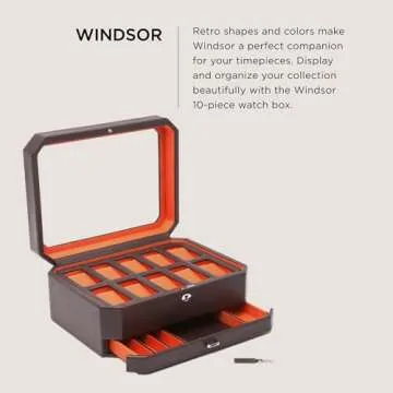 WOLF Windsor 10-Piece Watch Box with Drawer, Brown/Orange - Features 10 Watch Compartments, Eight Ring Rolls & 17 Jewelry Compartments - Vegan Leather Exterior