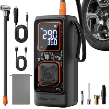 The MegaFlow24 Portable Air Compressor by WOLFBOX is a game-changer for vehicle owners, combining cutting-edge technology with thoughtful design. This compact yet powerful device is your best friend on the road, allowing you to inflate car, motorcycle, bicycle tires, and even sports balls with incredible efficiency. With a maximum pressure of 150 PSI and an impressive airflow rate of 35L/Min, inflating a standard car tire (195/65/R15) from 29 to 36 PSI only takes about a minute. This feature ensures that...