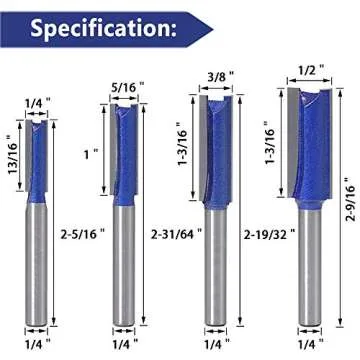 Wolfride 4pcs Straight Cut Router Bits 1/4-Inch Shank Double Flute Straight Router bit Set