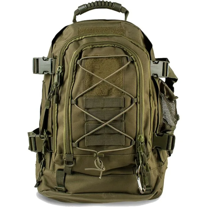 Show moreThe Military Backpack with Multiple Compartments and Large Capacity is a versatile and reliable companion for a variety of activities. With a regular size of 14.5 x 21 x 8 inches, it can expand to 14.5 x 21 x 13 inches, increasing its capacity from 39L to a spacious 64L. This makes it perfect for those who need a little extra room for their belongings. The backpack is constructed from durable 600D material, which is water-resistant, ensuring that your items remain dry even in adverse weather conditions. This backpack is equipped with multiple compartments including a mesh pocket for a water bottle, making organization effortless.