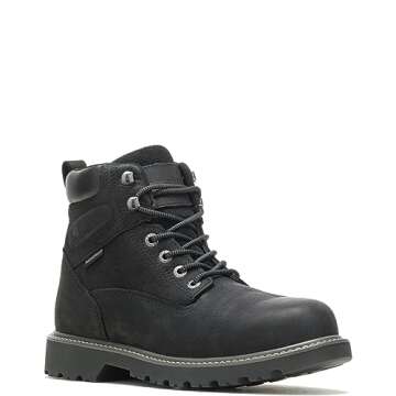 Show moreStep into comfort and safety with the Wolverine Men's Floorhand Waterproof Steeltoe 6" Work Boot, engineered to meet the demands of the hardest working individuals. This boot features a premium waterproof full-grain leather upper, ensuring that your feet remain dry in any wet conditions, so you can tackle your day without worrying about the elements. With an essential steel toe that meets ASTM standards, your feet are shielded against impacts without sacrificing comfort. Designed for those who spend long hours on their feet, this boot incorporates a slip-resistant rubber lug outsole, providing superior grip and stability on slippery surfaces, ensuring you can stay firmly on your feet no matter the terrain.