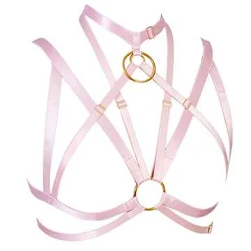 Woman Bra Harness Punk Gothic Garter Tops cage Plus Size Stretchy Fabric Dance Costumes Pink