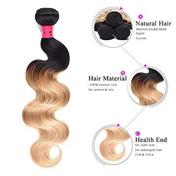 WOME Peruvian Hair Bundles 1 Bundle Ombre Blonde Body Wave Human Hair Wefts Extensions Deal with Mixed Lengths(10", Ombre Blonde 1b/27#)