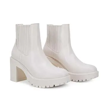 Womems Platform Lug Sole Ankle Boots Chunky Block Heel Seam Booties Combat Cozy Round Toe Chelsea Shoes