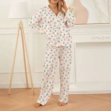 Women 2 Piece Floral Pajamas Lounge Set - Soft & Cozy Sleepwear