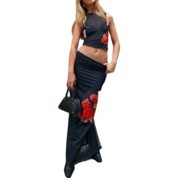 Show more Introducing our Women 2 Piece Long Skirt Set Sleeveless Crop Camis Bodycon Maxi Midi Skirts Y2K Two Piece Outfit Beach Wear, a unique addition to your wardrobe that blends fashion and comfort seamlessly. Crafted from high-quality polyester, this bodycon midi skirt set features a soft touch that feels light against the skin, enabling you to flaunt your style with ease. The vintage knit crochet design provides a chic aesthetic, making it perfect for various occasions, whether a day at the beach or a night out on the town. The sexy sleeveless top and high-waisted skirt create a flattering silhouette that is sure to turn heads and elevate your confidence.