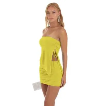Show moreStep into summer with a stunning look! The Women 2 Pieces Outfits Summer Asymmetrical Ruffle Hem Strapless Tube Top Sexy Bodycon Skirt Matching Set in a delightful yellow is designed to turn heads. Crafted with lightweight and breathable fabric, this outfit embraces comfort while making you feel stylish and confident. The soft, stretchy material ensures a flattering fit for various body types, allowing you to showcase your curves in all the right places. Featuring a chic asymmetrical hem and a trendy ruched design, this set is the ultimate wardrobe addition for those who love to stand out without sacrificing comfort.