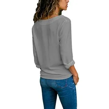 Women 2018 Fashion Shirts Turn-Dwon Collar Tops Casual Gray Button Down Blouse Roll up Long SleeveXL 16 18